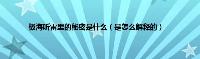 欢迎观看本篇文章,小升来为大家解答以上问题。极海听雷里的秘密是什么,是怎么解释的很多人还不知道,现在让我们一起来看看吧!