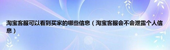 大家好,综合小编来为大家讲解下淘宝客服可以看到买家的哪些信息,淘宝客服会不会泄露个人信息这个很多人还不知道,现在让我们一起来看看吧!