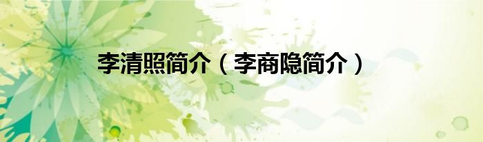 以上就是【李清照简介,李商隐简介】相关内容。