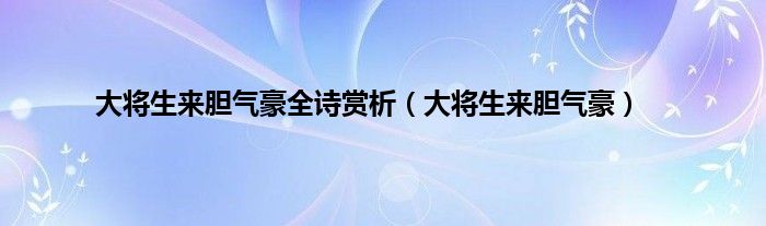 大家好,小问来为大家解答以上问题。大将生来胆气豪全诗赏析,大将生来胆气豪这个很多人还不知道,现在让我们一起来看看吧!