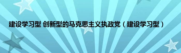 大家好,小问来为大家解答以上问题。建设学习型 创新型的马克思主义执政党,建设学习型这个很多人还不知道,现在让我们一起来看看吧!