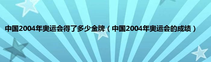 欢迎观看本篇文章,小升来为大家解答以上问题。中国2004年奥运会得了多少金牌,中国2004年奥运会的成绩很多人还不知道,现在让我们一起来看看吧!