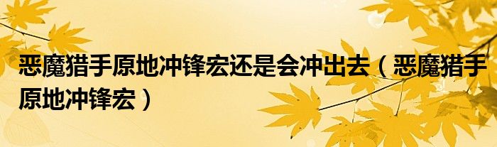 关于恶魔猎手原地冲锋宏还是会冲出去,恶魔猎手原地冲锋宏这个很多人还不知道,今天菲菲来为大家解答以上的问题,现在让我们一起来看看吧!