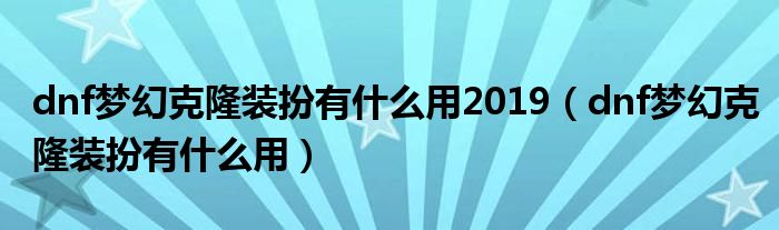 关于dnf梦幻克隆装扮有什么用2019,dnf梦幻克隆装扮有什么用这个很多人还不知道,今天菲菲来为大家解答以上的问题,现在让我们一起来看看吧!