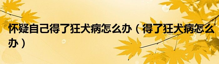 大家好,乐天来为大家解答以下的问题,怀疑自己得了狂犬病怎么办,得了狂犬病怎么办很多人还不知道,现在让我们一起来看看吧!