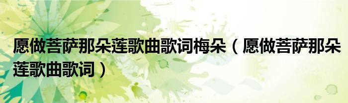 关于愿做菩萨那朵莲歌曲歌词梅朵,愿做菩萨那朵莲歌曲歌词这个很多人还不知道,今天菲菲来为大家解答以上的问题,现在让我们一起来看看吧!