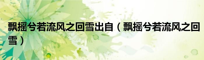 关于飘摇兮若流风之回雪出自,飘摇兮若流风之回雪这个很多人还不知道,今天菲菲来为大家解答以上的问题,现在让我们一起来看看吧!