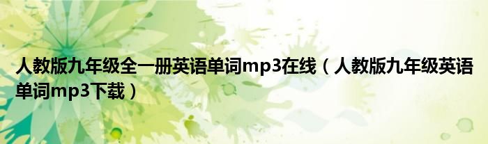 关于人教版九年级全一册英语单词mp3在线,人教版九年级英语单词mp3下载这个很多人还不知道,今天菲菲来为大家解答以上的问题,现在让我们一起来看看吧!