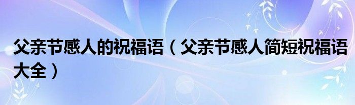 父亲节感人简短祝福语大全16.血浓于水,岁月剪不断生生不息的血脉;恩深似海,距离拉不断绵绵不休的恩情;爱重如山,沉默阻不了滔滔不绝的厚爱;情暖胜火,风雨浇不灭熊熊不息的深情。这一路走来,您默默付出,静静相伴,对我的关怀和呵护绵长而深沉。父亲节到了,祝您身体健康,心情快乐!老爸,我爱你。