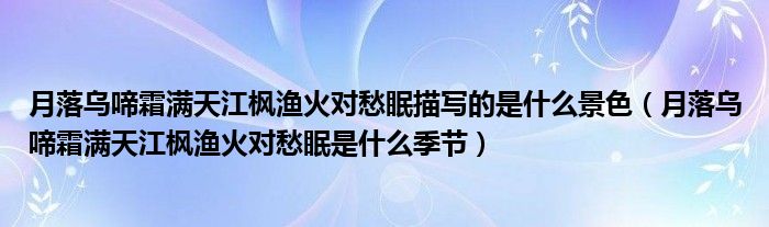 大家好,乐儿来为大家解答以下问题,月落乌啼霜满天江枫渔火对愁眠描写的是什么景色,月落乌啼霜满天江枫渔火对愁眠是什么季节很多人还不知道,现在让我们一起来看看吧!