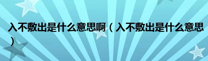 关于入不敷出是什么意思啊,入不敷出是什么意思这个很多人还不知道,今天菲菲来为大家解答以上的问题,现在让我们一起来看看吧!