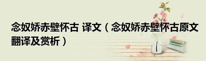 大家好,乐儿来为大家解答以下问题,念奴娇赤壁怀古 译文,念奴娇赤壁怀古原文翻译及赏析很多人还不知道,现在让我们一起来看看吧!