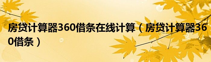 房贷计算器360借条在线计算(房贷计算器360借条)