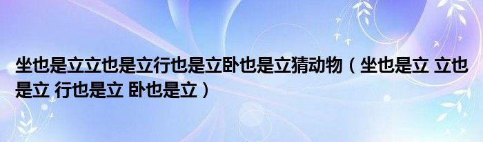 关于坐也是立立也是立行也是立卧也是立猜动物,坐也是立 立也是立 行也是立 卧也是立这个很多人还不知道,今天菲菲来为大家解答以上的问题,现在让我们一起来看看吧!