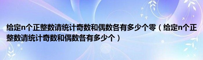 关于给定n个正整数请统计奇数和偶数各有多少个零,给定n个正整数请统计奇数和偶数各有多少个这个很多人还不知道,今天菲菲来为大家解答以上的问题,现在让我们一起来看看吧!