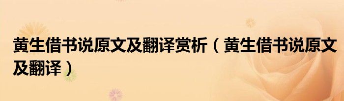 关于黄生借书说原文及翻译赏析,黄生借书说原文及翻译这个很多人还不知道,今天菲菲来为大家解答以上的问题,现在让我们一起来看看吧!