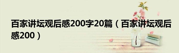 关于百家讲坛观后感200字20篇,百家讲坛观后感200这个很多人还不知道,今天菲菲来为大家解答以上的问题,现在让我们一起来看看吧!