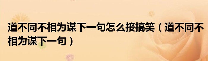 关于道不同不相为谋下一句怎么接搞笑,道不同不相为谋下一句这个很多人还不知道,今天菲菲来为大家解答以上的问题,现在让我们一起来看看吧!