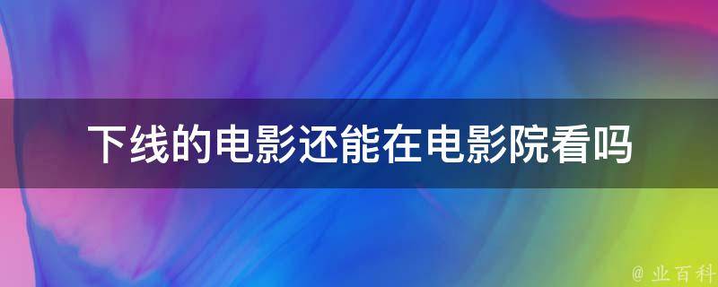 下线的电影不能在电影院看。电影下线后,电影院没有了密钥,是无法播放的,除非这部电影重新拿到了密钥二次上线才可以观看。当电影下线后过一段时间,可以去各大有版权的视频网站上去观看,比如腾讯视频、优酷视频、搜狐视频、爱奇艺视频等。