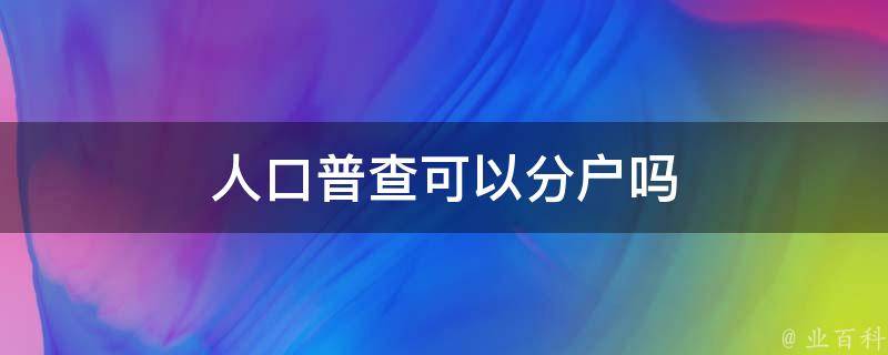 人口普查不可以分户。人口普查和分户没有任何关系,人口普查是国家对人口的一次具体情况的调查,调查的信息是人口比例、发展状况、出生性别比例等。如果需要分户,申请人需持私有房屋所有权证、户口簿、身份证到当地政务中心户籍所在地派出所窗口办理分立户手续。