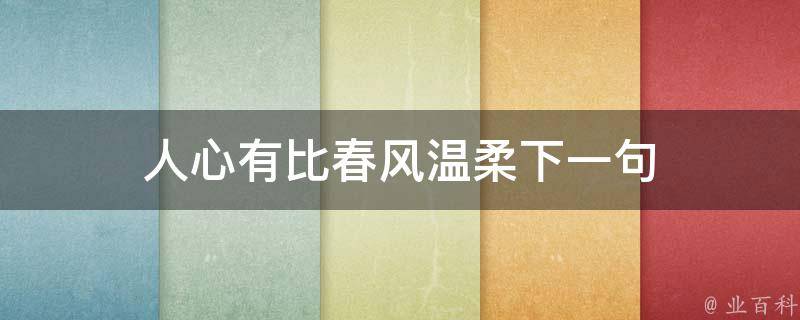 人心有比春风温柔下一句是世间无事到如云,这句话强调了人们心中的柔情和善良,但也提醒人们世事无常、变幻莫测。它表达了对人性的理解,让人们认识到在温柔之下,世间的事物随时发生变化,需要保持警觉和适应能力。
