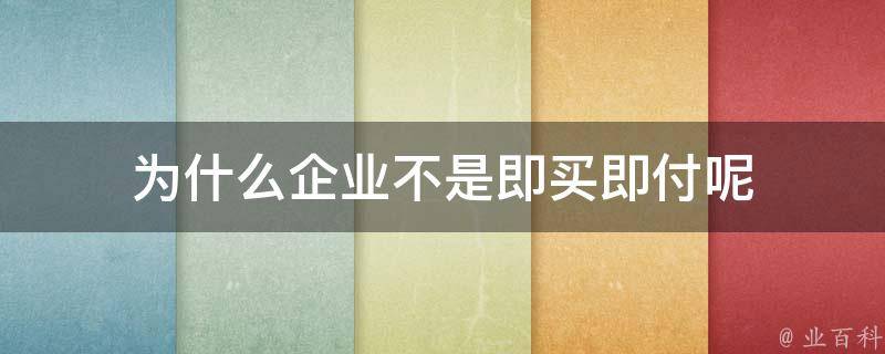 为什么企业不是即买即付呢