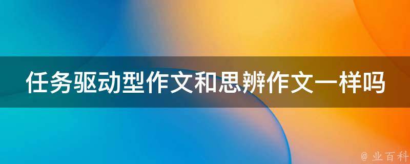 任务驱动型作文和思辨作文不一样。任务驱动型作文是基于特定要求完成的,强调按规定格式和步骤进行写作;思辨作文则更强调作者的独立思考、观点和论证的可行性。任务驱动型作文是基于给定的任务要求和指导准则进行写作的,常见于教育考试或学术作业中。它通常要求学生根据提供的信息、问题或主题,按照特定的结构和要求,进行逻辑清晰、有条理的陈述和论证。任务驱动作文更注重解决问题、回答问题或完成特定任务的能力,包括提供相关的信息、进行分析和归纳、得出结论等。思辨作文是一种表达作者观点、思考问题、探索思想的作文形式。它鼓励作者通过推理和辩论,对某个问题或主题进行深入思考和分析,并提出自己的观点和论证。思辨作文注重思维的独立性、创造性和批判性,强调作者对问题的深入探讨、证据支持和逻辑思维的合理性。