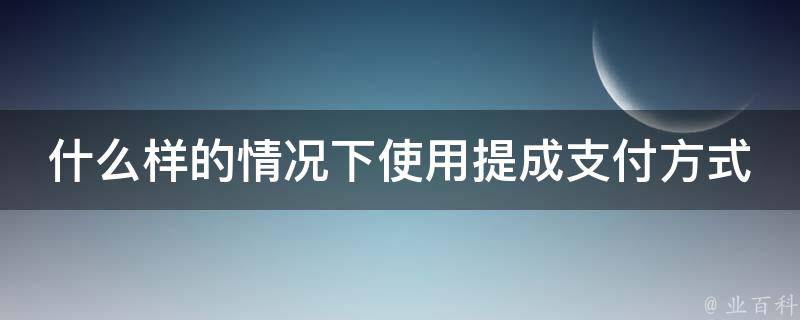 当一个公司或者组织需要激励部门或者员工在销售、业绩或者其他财务相关领域上表现出色时,可以使用提成支付方式。这种方式可以激励员工积极争取业务,并且因为业务员所得到的提成与公司所获得的收益相对应,所以也可以促进公司的利润增长。