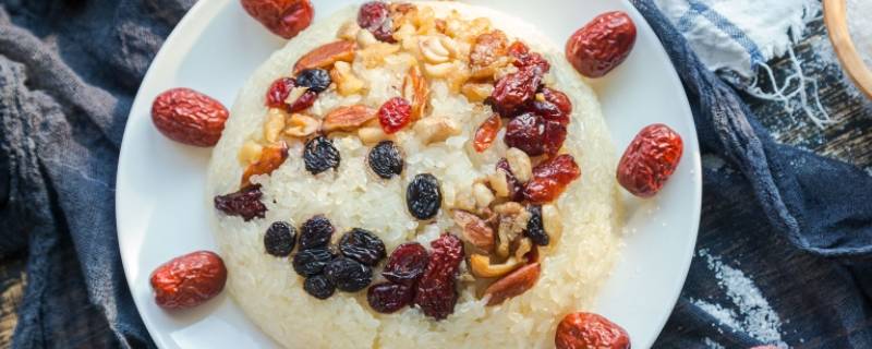 八宝饭寓意着吉祥平安、团团圆圆、幸福甜蜜、财源滚滚。八宝饭里有莲子、桂圆、金橘、红枣、蜜樱桃或蜜冬瓜、薏仁米、瓜子仁等。莲子象征婚姻和谐和好;桂圆象征团圆;金橘象征吉利;红枣象征早生贵子;蜜樱桃、蜜冬瓜象征甜甜蜜蜜;薏仁米系仙鹤转化而成,象征长寿、高雅、纯洁。