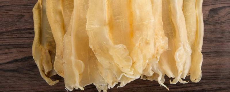 鱼肚叫花胶。通常来源于石首鱼,是鱼鳔的干制品,以富有胶质而著名,故名为花胶。从鱼腹中取出鱼鳔,切开晒干后而成。花胶含有丰富的蛋白质、胶质等。鱼胶与燕窝、鱼翅齐名,是“八珍”之一,素有“海洋人参”之誉。