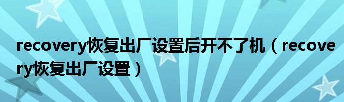 大家好,小联来为大家解答以上的问题。recovery恢复出厂设置后开不了机,recovery恢复出厂设置这个很多人还不知道,现在让我们一起来看看吧!