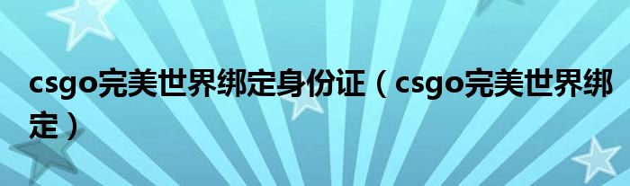 csgo完美世界绑定身份证(csgo完美世界绑定)