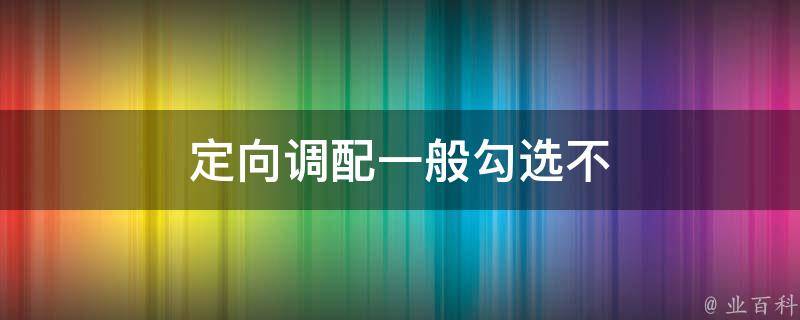 视情况而定。如果愿意接受调配则可以勾选,但如果对自己的成绩十分有把握,是不需要勾选的。定向调配是指报考定向就业招生学校且愿定向的考生,应填报该校定向专业志愿或勾选该校的定向调配栏。录取时,若填报定向专业志愿考生的生源不足,学校可调配录取勾选了定向调配栏的考生到定向专业。