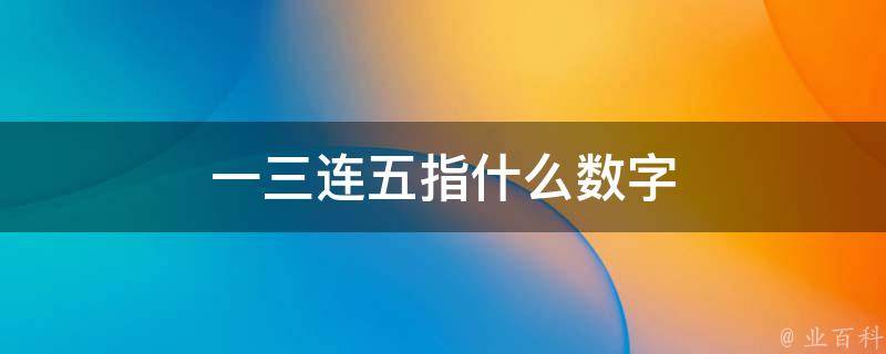 一三连五指数字8。因为1+3+5等于8,并且1、3、5都能用一个手表示出来,所以,一三连五指数字8。在数字运用中,8代表发、拜拜、不的意思。