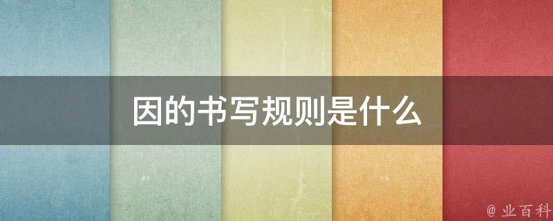 因的书写规则是:先写左面,再写右面,再写中间,最后写下面封口。因是汉语一级通用汉字。此字始见于商代甲骨文。因的古字形像躺在席子上,后引申为凭借、依靠。由凭借、依靠引申为沿袭、承接。由沿袭、承接引申为缘由、缘故。
