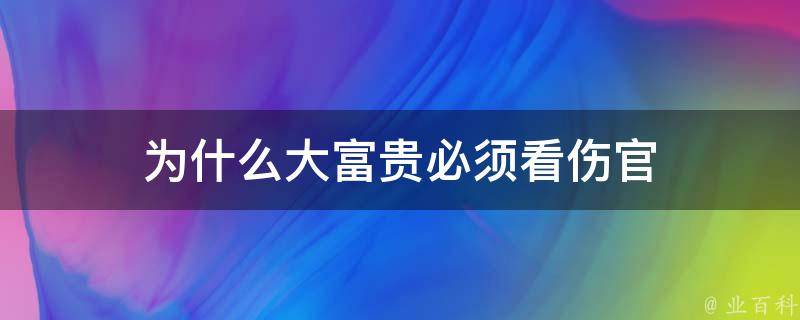 大富贵必须看伤官是因为伤官代表智慧和才华,是成功的关键因素之一;代表人际关系和人缘,能得到他人的支持和帮助;代表财运和财富,能在自己的事业中获得丰厚的回报;代表事业和成就,能在自己的事业中获得卓越的成就;代表健康和长寿,能长寿健康。