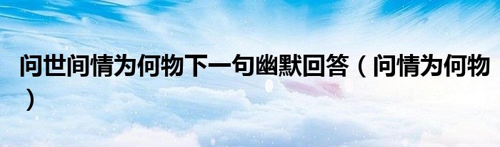 大家好,小联来为大家解答以上的问题。问世间情为何物下一句幽默回答,问情为何物这个很多人还不知道,现在让我们一起来看看吧!