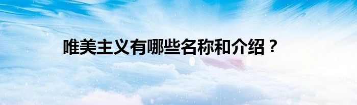 唯美主义有哪些名称和介绍?