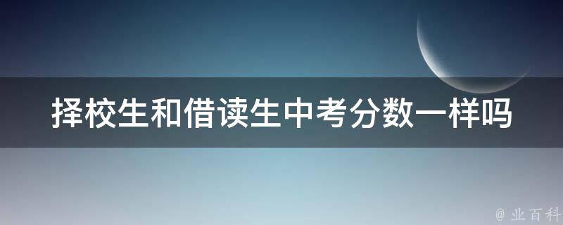 择校生和借读生中考分数不一样。择校生和借读生在中考中的分数线是不同的。借读生没有指标到校名额,而择校生有指标到校名额。因此,在中考中,借读生的录取分数线会比择校生高。但是,如果择校生和借读生在中考中的成绩相同,那么择校生和借读生会被同一所高中录取。