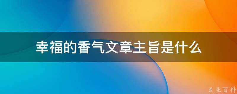 幸福的香气文章主旨是作者毕淑敏通过温情的暖心文字,从多个全新的视角阐述幸福。《幸福的香气》中,作者毕淑敏透过温情的暖心文字,为读者浮躁的心增添一抹淡然如水的柔软与平和,希望每一个读过这本书的人,能重新梳理自己凝望世界的基本视角。