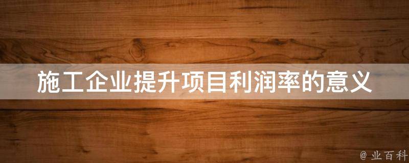 施工企业提升项目利润率的意义在于:利润率是项目管理考核中最重要的指标,提升项目利润率能够提高项目的经济效益,进而提高企业的整体竞争力。提升项目利润率是施工企业不断扩大市场份额、实现可持续发展的必然要求。