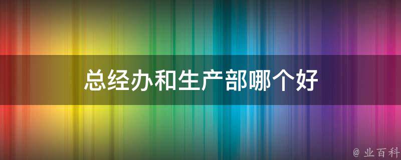 总经办和生产部各有优缺点。总经办和生产部是完全不同的部门,总经办的工作主要是负责公司的行政、人事、采购、后勤、文档等方面的管理,而生产部则是负责公司的生产、质量、技术等方面的管理。总经办的工作比较杂,但能够锻炼人的全面性,可以让人更好地理解公司的运营情况,提高个人的全局观。生产部的工作则比较单一,但能够锻炼人的专业性。