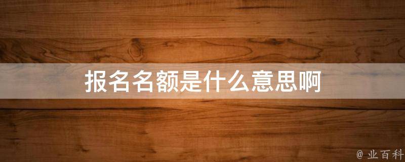 报名名额是指某些活动、课程或者就业机会在报名参加或者申请时,允许报名的数量。例如学校或者培训班招收学员的名额,或者某个活动的参赛者人数限制等。一旦超过这个数量,就不再接受报名,因此每个想要参加的人都需要尽早报名,以避免错过机会。