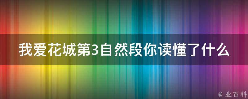 我爱花城第3自然段你读懂了什么