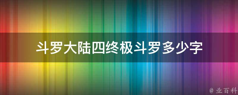 斗罗大陆四终极斗罗445.3万字。《斗罗大陆Ⅳ终极斗罗》是起点中文网首发的一本玄幻类小说,作者是唐家三少。《斗罗大陆Ⅳ终极斗罗》是《斗罗大陆》系列的第四部,讲述的是《斗罗大陆III龙王传说》一万年后的故事,作品继承了《斗罗大陆》系列的诸多设定。