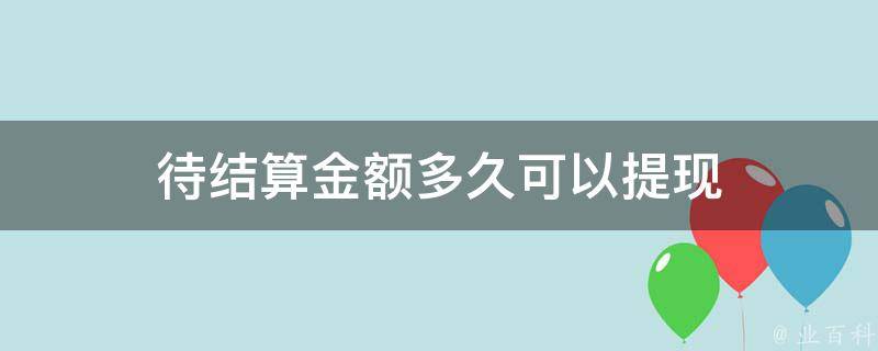 待结算金额3天内可以提现。以美团外卖平台为例,待结算金额指的是消费者下单后,还没有达到系统自动收货的时间,此时商家无法收到钱款。为了保障商家的资金安全,避免资金滞留,美团外卖平台设置了自动提现的功能。
