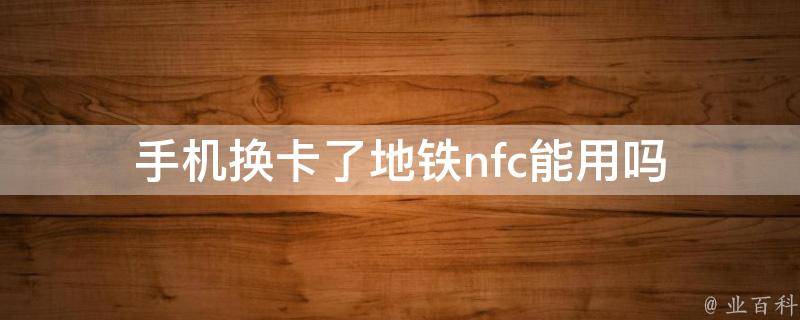 手机换卡了地铁nfc能用。要使用手机NFC功能,需要确保手机支持NFC功能。如果手机支持NFC功能,那么可以直接使用NFC功能进行支付、门禁等操作。另外,更换手机卡后可能会对手机信号产生一定影响,建议在更换后进行一次网络设置以确保信号正常。