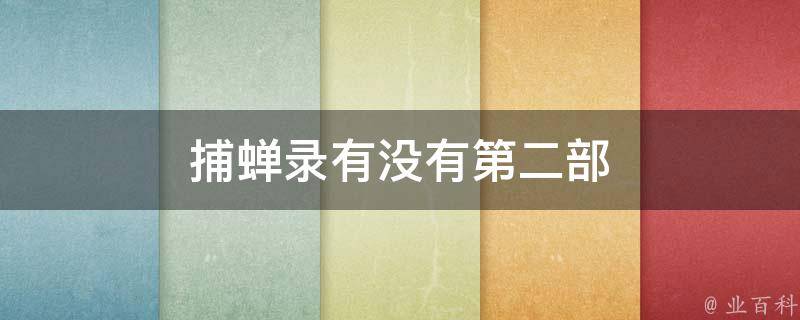 捕蝉录有第二部。《捕蝉录》第二部名为《捕蝉录二:仙人抚》,作者为积海水。小说简介:江湖,不只尔虞我诈,也有对酒当歌。继第一部后,少年裴朴将面临最黑暗的一系列人性考验,数次反转,是坚持本心,还是陷于其中?脱胎换骨,在此一役。