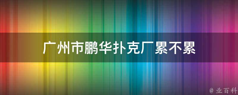 视情况而定。广州市鹏华扑克厂的工作可能会因具体岗位和分配的任务而有所不同。如果想去广州市鹏华扑克厂工作,建议直接咨询招聘方或内部员工以了解实际工作环境和条件。这样可以更准确地了解工作情况,以便做出更明智的选择。