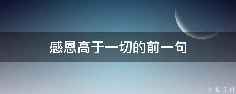 感恩高于一切的前一句是永远不要忘了拉过你一把的人。感恩,高于一切,感恩是一种美德,是一种积极向上的心态,当我们心存感恩之情时,我们会更加懂得珍惜身边的人和事物,更加懂得珍惜自己的机会和资源,同时,感恩还能让我们更加谦逊。